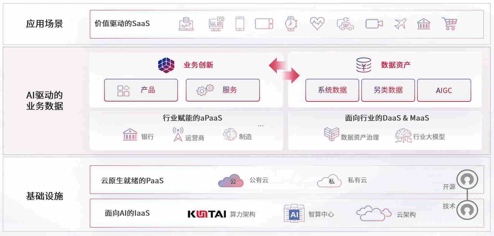 数字时代,,,,围绕企业数字化转型的关键要素,,,,1XBET数码开创性的提出数云融合战略和技术体系框架,,着力在云原生、、、数字原生、、、AI原生和信创产业上架构产品和服务能力,,为处在不同数字化转型阶段的快消零售、、汽车、、、、金融、、医疗、、、政企、、教育、、运营商等行业客户提供泛在的敏捷IT能力和融合的数据驱动能力,,,构建跨界融合创新的数字业务场景和新业务模式,,,,助力企业级客户建立面向未来的核心能力和竞争优势,,全面推动社会的数字化、、、智能化转型升级。。。